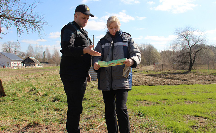 – В весенний период мы особенно часто говорим о палах и сжигании мусора, – отметил Сергей Адамович, обращаясь к жителям деревни. – Основные причины пожаров в природных экосистемах: нарушение установленных правил пожарной безопасности и действующего законодательства по недопущению выжигания сухой растительности, разведение костров в неустановленных местах.