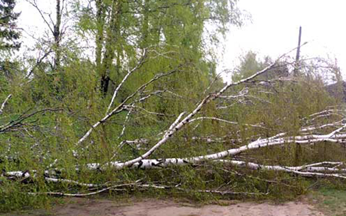 Среди пострадавших – деревья, ставшие жертвами бушующего ветра. Так, возле музыкального колледжа зафиксировано падение крупного дерева. Не обошел ветер стороной и территорию за городом: между деревнями Бояры и Лоси также имеются повреждения деревьев.