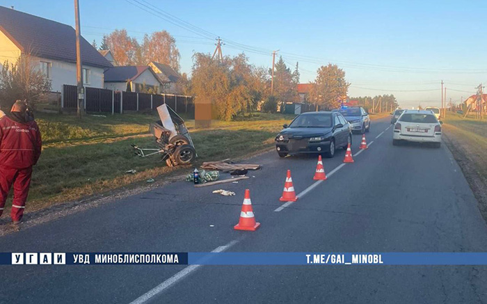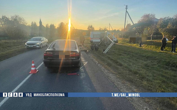 По информации УВД Минского областного исполнительного комитета, 20 октября на улице Чистинской в деревне Красное Молодечненского района 52-летний местный житель, управляя автомобилем Renault Laguna, при возникновении препятствия для движения не принял меры к снижению скорости вплоть до остановки, в результате чего совершил столкновение с попутно движущимся мотоблоком BD-850 под управлением 19-летнего водителя, отчего мотоблок с прицепом опрокинулся.