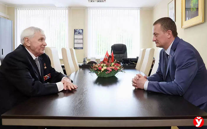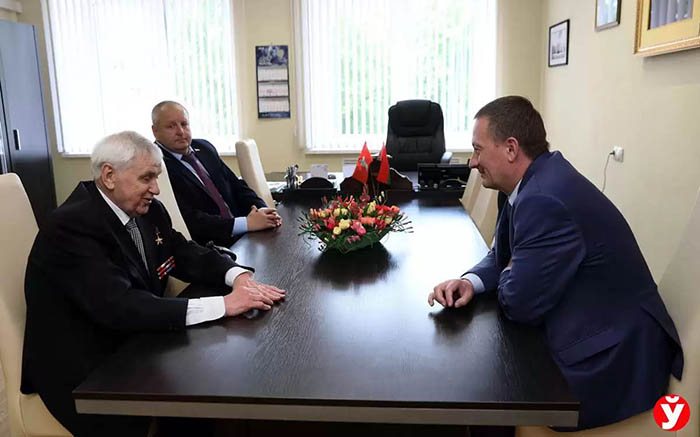 — Не мог сегодня не приехать и не поздравить такого человека как вы, Павел Лукьянович. Для меня самого это большая честь, — сказал руководитель центрального региона. — О всех ваших заслугах говорит ваша самая высшая награда — «Герой Беларуси». И то, что вы сделали для Жодино, для области, для нашей страны — сложно переоценить. С юбилеем вас! Хочу пожелать, чтобы и на ваше 90-летие, потом 95-летие, 100-летие мы могли встретиться!
