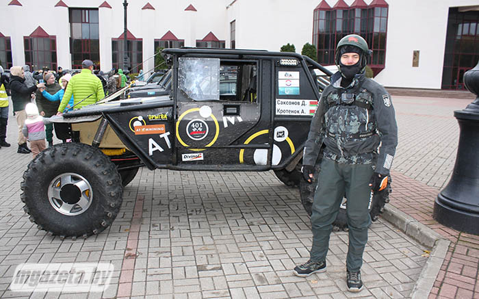 -- Машина, на которой я выступаю, собрана из разных узлов и агрегатов, -- рассказал участник соревнований из агрогородка Колодищи Артём Кротенок. -- Бензиновый двигатель и коробка передач в ней от автомобиля «Toyota», мост от «Volvo Laplander», рама авторская. Готовую технику купил в России, только немного переделали под свой вкус и потребности. На трассе «трансформер» развивает скорость свыше 100 километров в час. Мощность его двигателя -- 300 лошадиных сил.