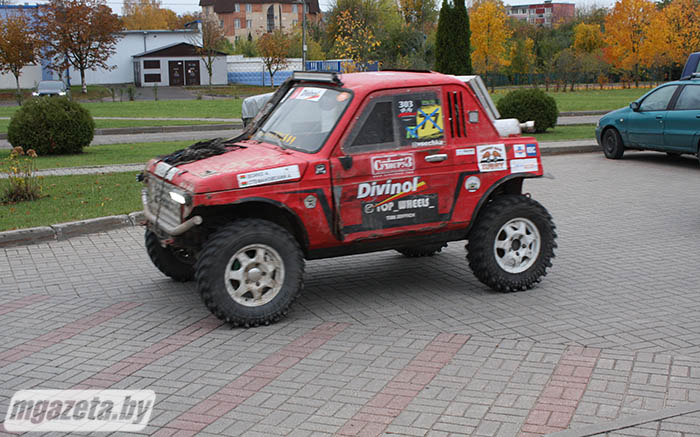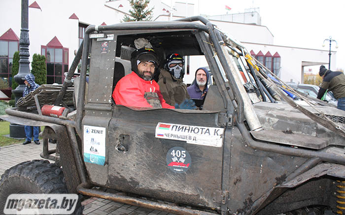 -- Трофи-рейд -- командный спорт, в нем состязаются экипажи по два-три человека, иногда больше. -- Пояснил участник чемпионата из Гродно Денис Чернышёв. Нередко на трассе автомобили застревают, выходят из строя. Тогда все помогают попавшему в беду экипажу. Вообще, взаимовыручка среди спортсменов приветствуется. Командный дух силен.
