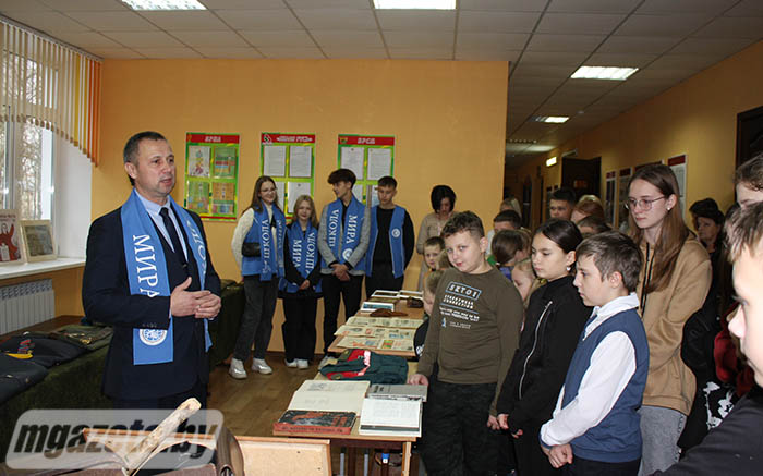 Мероприятие патриотической направленности прошло в рамках шестого школьного дня и стало знаковым событием в деле воспитания подрастающего поколения. Впечатлили учащихся Выверской базовой школы экспонаты передвижной выставки «Дорогами памяти» гимназии №6, где представлены периодические издания, литература, документы и награды военного времени, форменное военное обмундирование, а также плакаты и фотографии. Познавательную экскурсию провел руководитель по военно-патриотическому воспитанию гимназии Сергей Аминов.