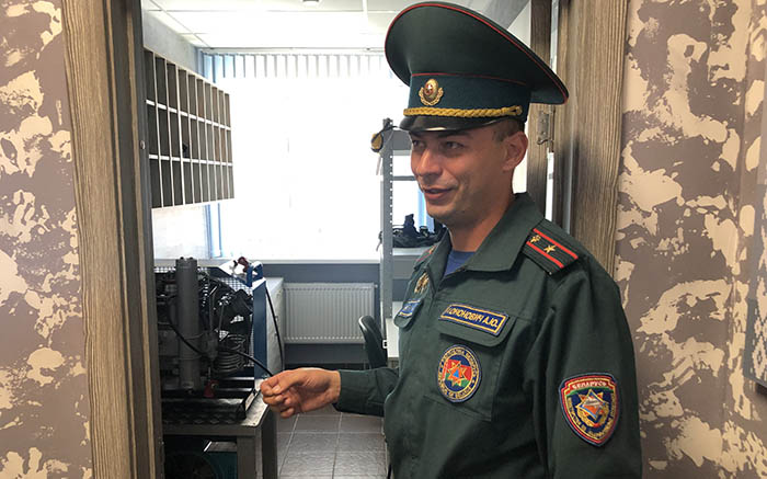 - Развивается государство - развиваемся и мы. Благодаря поддержке Президента нашей страны Александра Лукашенко, губернатора Минской области Александра Турчина и министра по чрезвычайным ситуациям Вадима Синявского улучшается и совершенствуется наша служба. Сотрудники области обеспечены современной экипировкой, оборудованы комнаты отдыха и приема пищи. Для поддержания хорошей физической формы действуют тренажерные залы и спортивные площадки.
