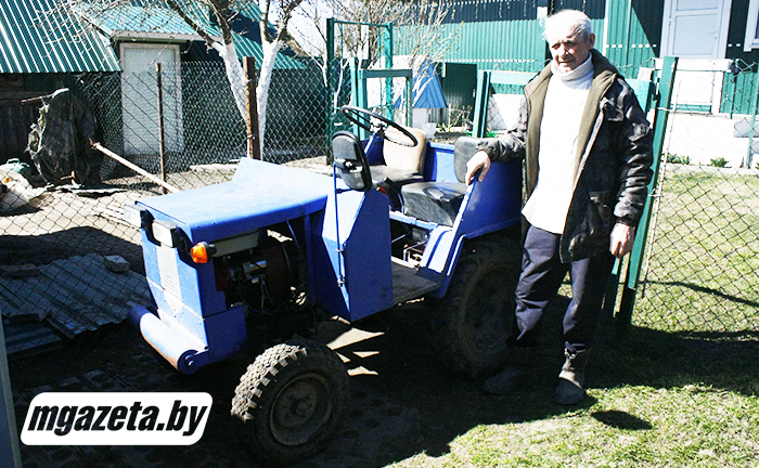 Лучший механический помощник по хозяйству для Петра Бурко – самодельный трактор, который он собирал пять лет. Находил выброшенные детали, приспосабливал их. Изначально технику приводил в движение мотор от мотоколяски. Недавно на самодельный сельскохозяйственный агрегат установил двигатель от мотоблока. Работает он на бензине.