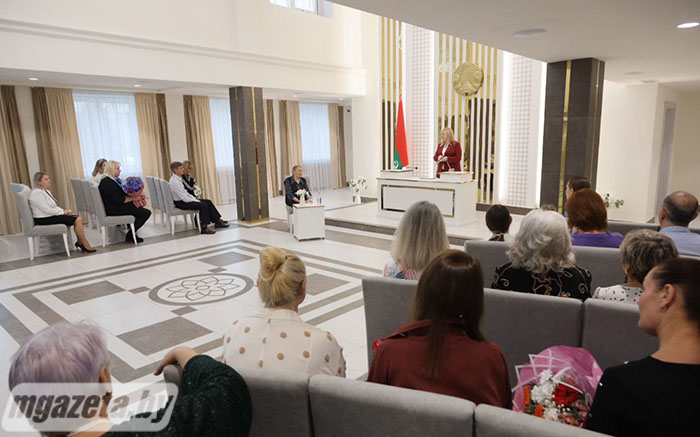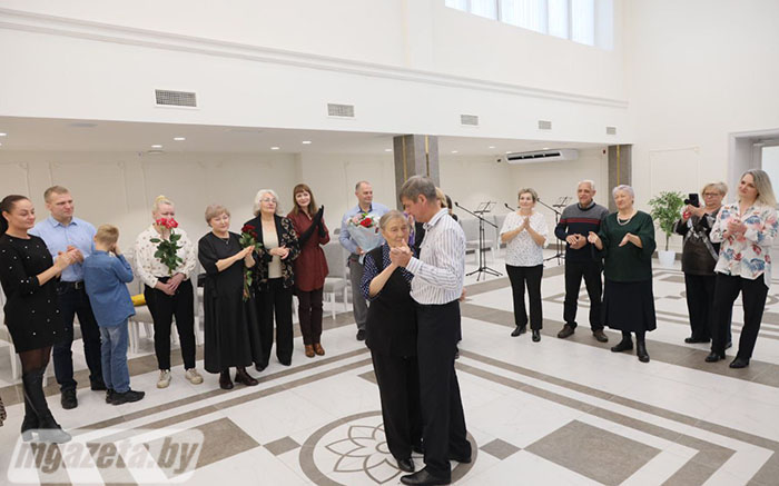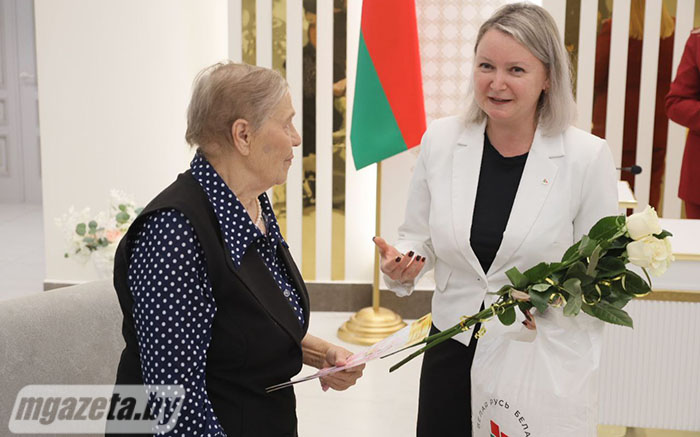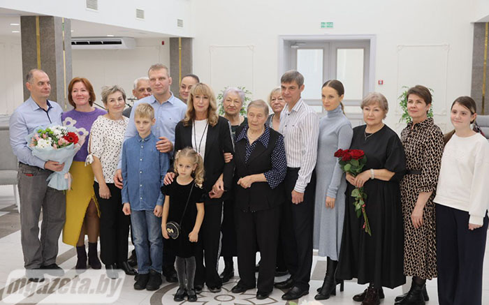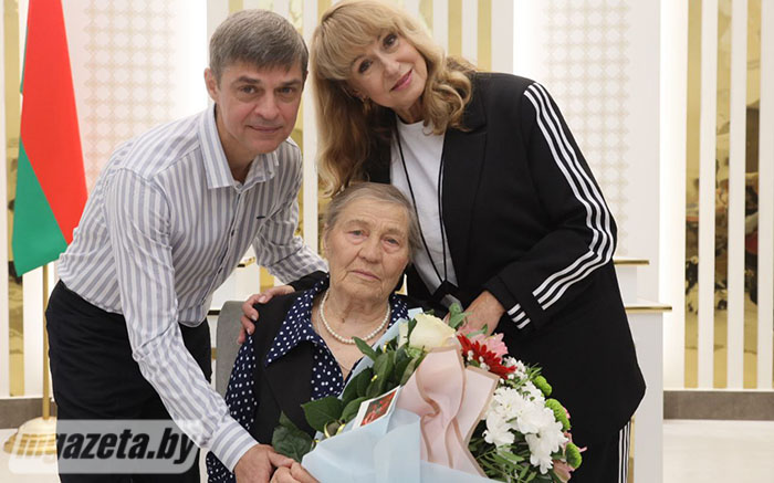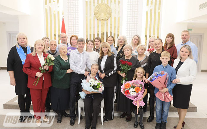 Поздравления и памятные подарки именинница получила также от председателя Молодечненской районной организации РОО «Белая Русь» Ирины Поцелуевой, члена президиума, исполняющей обязанности председателя Молодечненской районной профсоюзной организации работников государственных и других учреждений Натальи Лозовик, начальника отдела ЗАГС Молодечненского райисполкома Инны Ахполовой. Общественное объединение и названные учреждения выступили с совместной инициативой проведения мероприятия.