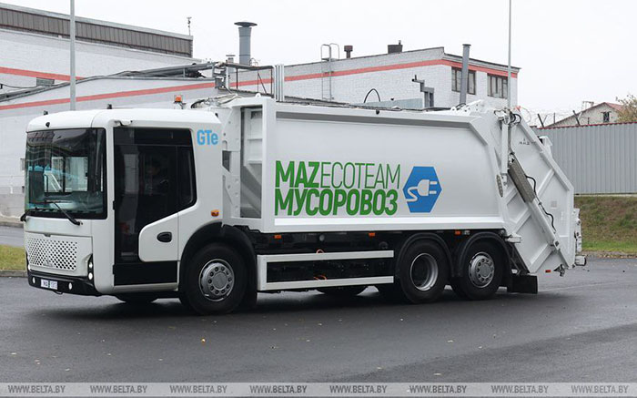 В присутствии министра природных ресурсов и охраны окружающей среды Беларуси Сергея Масляка МАЗ передал один из самых передовых образцов экологической техники – электромусоровоз MAZ-GTe – в опытную эксплуатацию белорусской компании, являющейся лидером на рынке комплексного обращения с отходами в Минске и Минской области, – ОДО «Экология Города». MAZ-GTe будет обслуживать жилой комплекс «Минск-Мир», осуществляя вывоз вторичных материальных ресурсов.