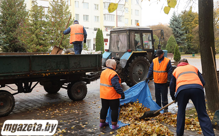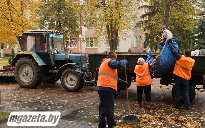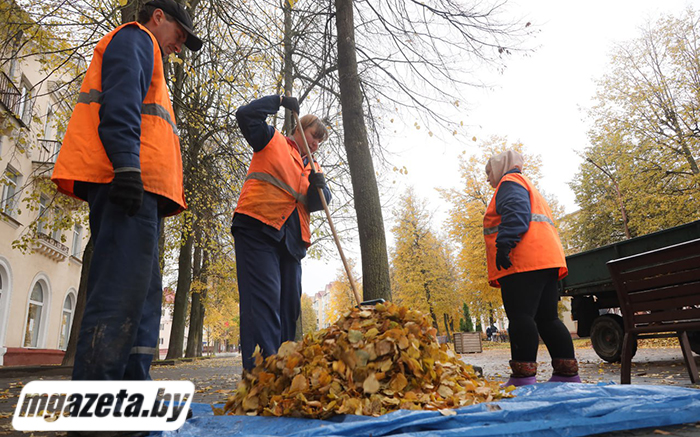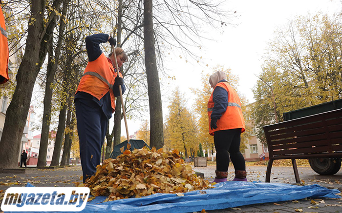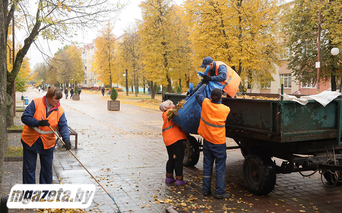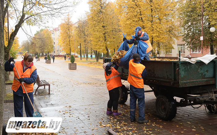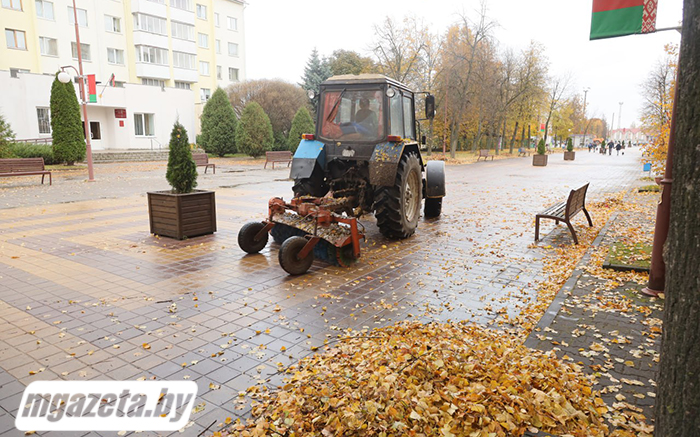 На улице Притыцкого в Молодечно работа кипит. На уборку города вышли работники УП «Коммунальник».