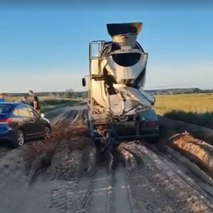 TikTok – великая сила: подбрасывает интересные рецепты, рассказывает о лайфхаках в ведении хозяйства, помогает похудеть и выбрать стрижку, а также найти нарушителей! Вот такой неожиданный поворот развития событий получило видео, на котором снято, как бетономешалка застряла на гравийной дороге, а водитель сам ее пытается откопать.