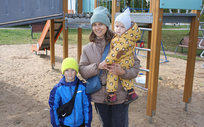 С молодой, обаятельной женщиной мы познакомились на детской игровой площадке. Старшая дочь Аня была в школе, а Вася и Витя вышли с мамой на прогулку. Живут они на улице Русанова. Отлично, что недалеко от их дома есть место, где ребята могут поиграть. Несколько лет назад к фестивалю-ярмарке тружеников села «Дажынкі» оборудовали эту яркую игровую зону. Не пустует в Чисти и скейт-площадка.