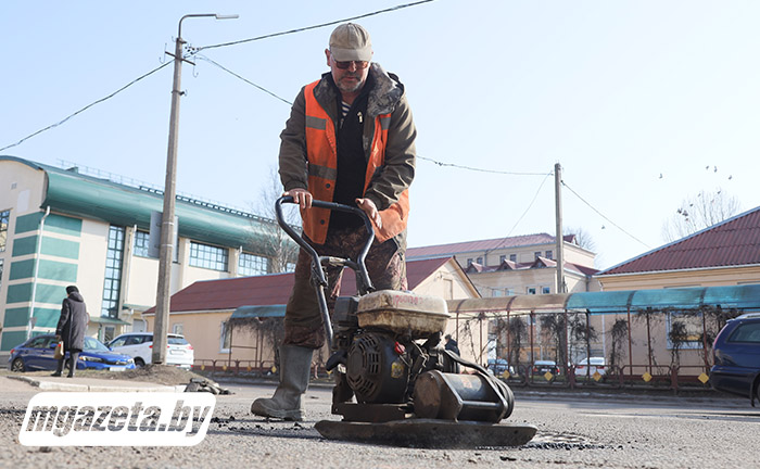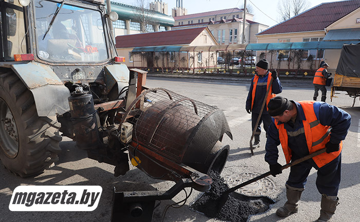 Сегодня на улице Громадовской работники УП «Коммунальник» проводят ямочный ремонт.