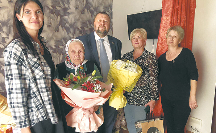 Феодосия Бельская – одна из старожилов сельсовета. Свой вековой юбилей она отметила в семейном кругу. Добрые слова адресовали ей родственники, а также председатель Мясотского сельисполкома Олег Горбач, главный специалист по идеологической работе ОАО «Восход-Агро» Кристина Янушкевич, председатель профсоюзного комитета сельхозпредприятия Анна Карней.