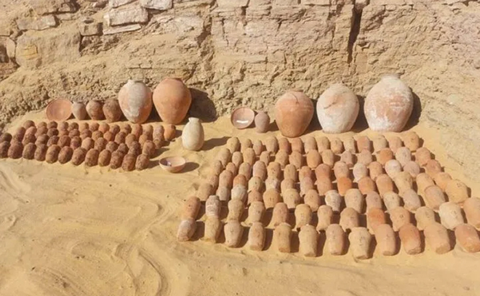 Глава сектора египетских древностей Высшего совета по делам древностей Мохамед Абдель Бади рассказал, что в двух погребальных камерах были найдены около 160 глиняных сосудов различных размеров и форм, которые использовались для хранения жидкостей и зерна. Большинство из них хорошо сохранились и имеют иератические надписи (одна из форм египетского письма).