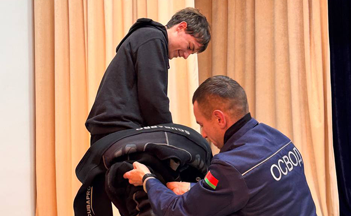 Как отметил председатель районной организации ОСВОД Анатолий Петюшик, в рамках Дня безопасности проводятся различные мероприятия, в том числе посещение учреждений среднего образования, социальных заведений, трудовых коллективов. Такая встреча недавно состоялась в Молодечненском государственном медицинском колледже имени И.В. Залуцкого. В мероприятии принял участие водолаз-спасатель Вилейской спасательной станции.
