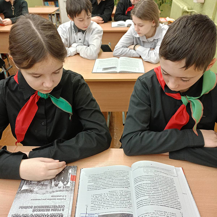 Тема геноцида белорусского народа была продолжена в стенах школы. Так, руководитель военно-патриотического воспитания Юрий Ермакович у стенда «Скорбный набат» провел информационный час на тему «Трагедия белорусских евреев», посвященный одной из самых страшных страниц истории нашей страны.