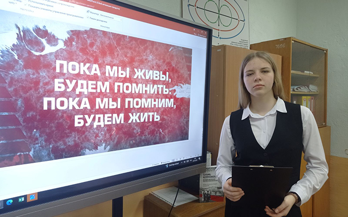 В минувшую среду, 14 января, учащиеся Городиловской средней школы Молодечненского района приняли участие в Едином уроке «Урок памяти, посвященный трагедии в д. Ола». Эпиграфом к проведению урока стали слова Президента: «… Нет никаких оправданий политике геноцида, нет ничего важнее жизни человеческой».