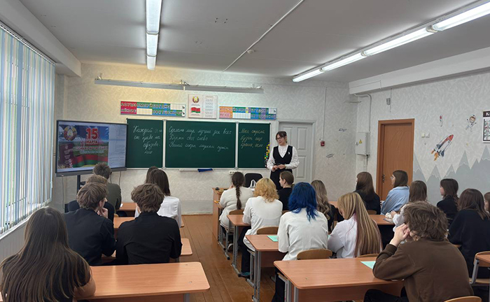 Сегодня в средней школе № 11 города Молодечно главный редактор «Маладзечанскай газеты» депутат Молодечненского районного Совета депутатов Людмила Нехвядович приняла участие в едином уроке, посвященном Дню Конституции Республики Беларусь.