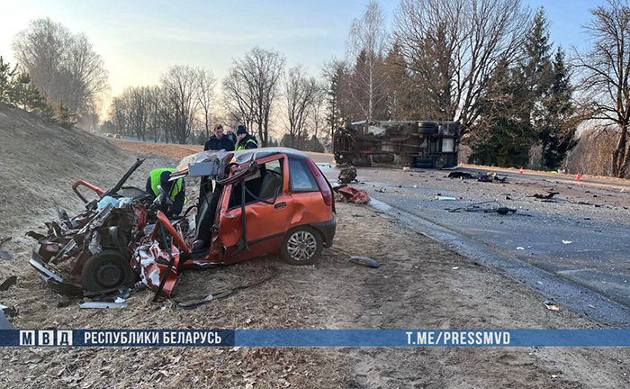 25 марта около пяти часов утра в Молодечненском районе, на 56-м километре автодороги Р-28 Минск – Молодечно – Нарочь, вблизи деревни Красное, по предварительной информации, 25-летняя местная жительница за рулем «Фиат» на закруглении дороги вправо не справилась с управлением, выехала на полосу встречного движения, где допустила лобовое столкновение с грузовиком Mercedes под управлением 47-летнего мужчины.