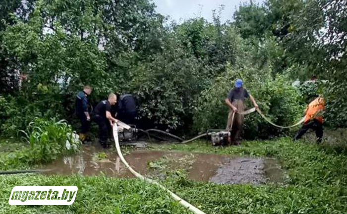 Сильные дожди привели к подтоплению придомовой территории на улице Святоянской. На место происшествия оперативно прибыли бойцы службы ГРОЧС и работники Молодечноводоканала. Всю ночь спасатели откачивали воду, спасая двор и огород.