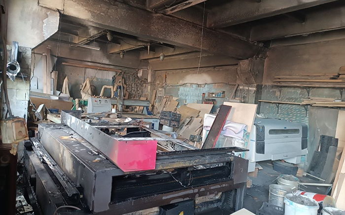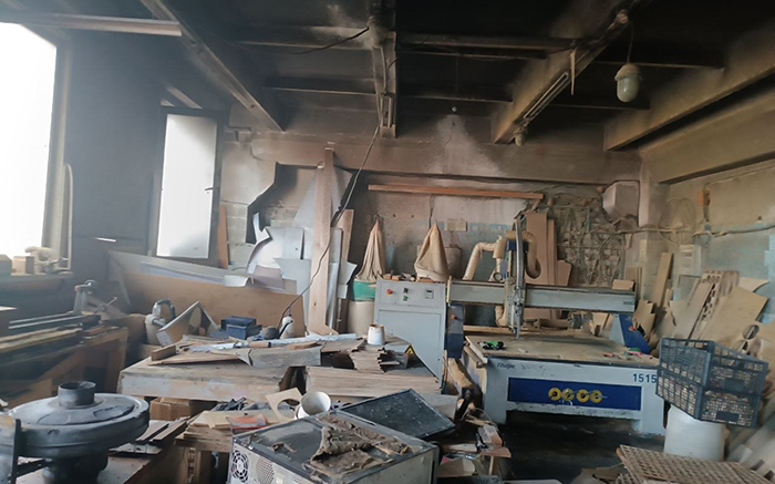 В результате пожара закопчены стены и имущество в одном из помещений здания, уничтожен станок.