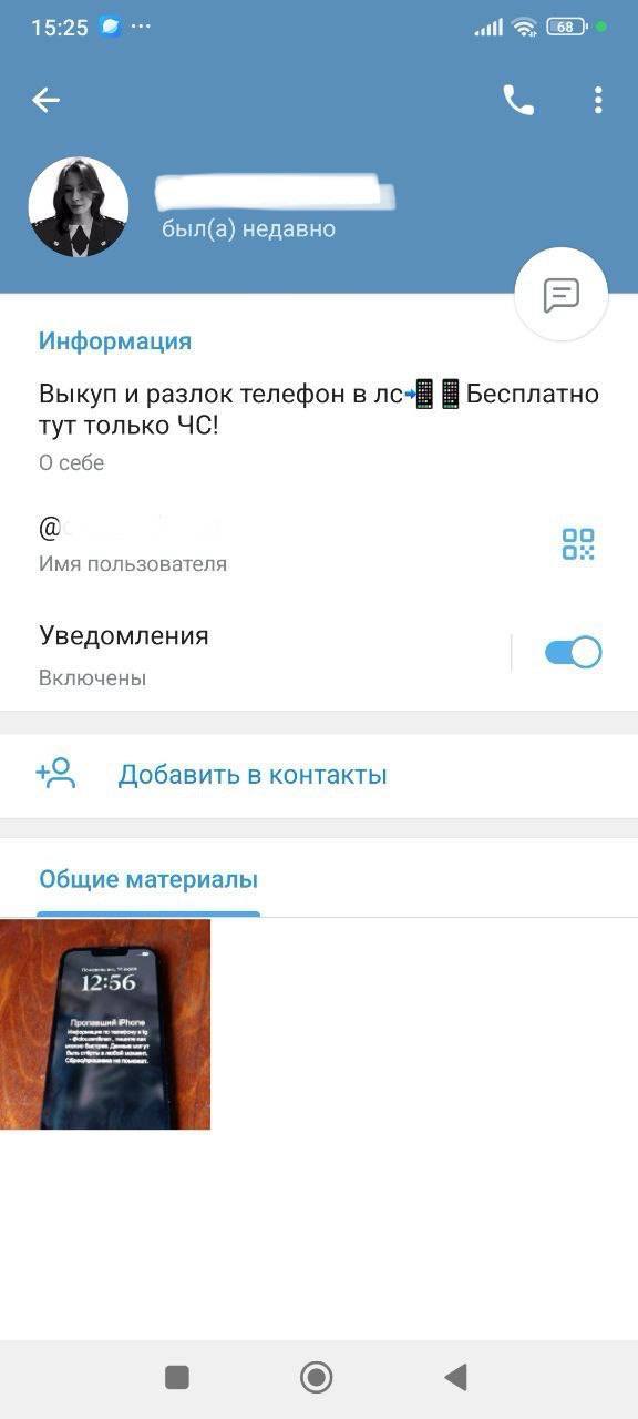После ввода новой учетной записи айфон заблокировался, а на экране высветился способ связи со злоумышленниками в мессенджере, где в последующем они потребовали у девушки за доступ к личному аккаунту денежное вознаграждение..jpg)
