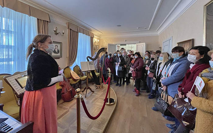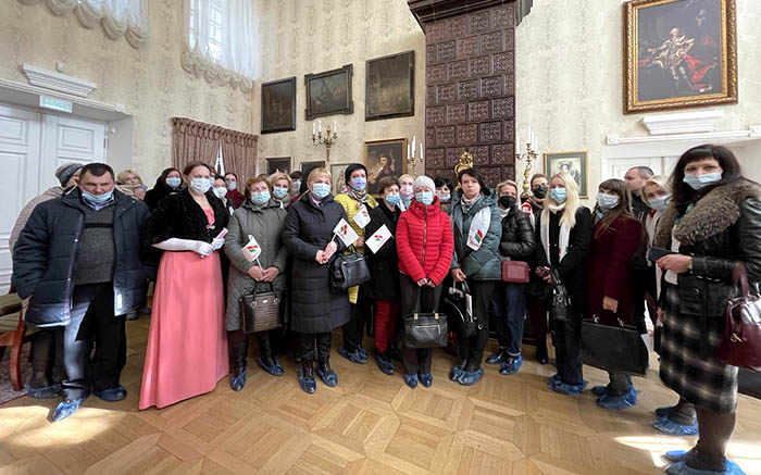 Агрогородок Залесье в нескольких километрах от Сморгони - один из центров туристического притяжения не только региона, но и всей Беларуси. После масштабных реставрационных работ удалось воссоздать "Северные Афины", как называли усадьбу современники композитора, практически в том виде, какими они были при жизни известнейшего владельца. В атмосферу XIX века с дамами в пышных нарядах, элегантными кавалерами, балами и поездками на роскошных каретах окунулись и активисты наших первичных организаций.