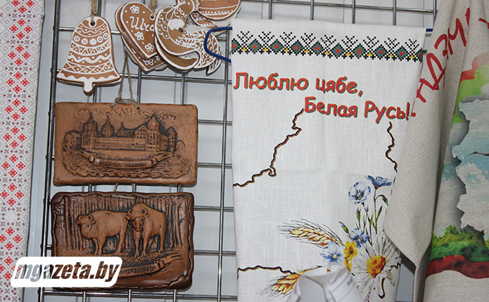 Привлекают внимание размещенные на видном месте в торговом зале рушники с надписью «Люблю цябе, Белая Русь!», керамические панно с изображением белорусских достопримечательностей.
