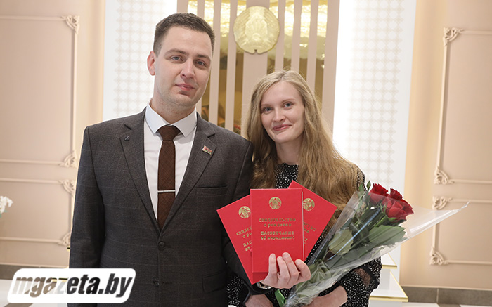 Поздравления и памятные подарки молодые родители получили от заместителя председателя Молодечненского районного исполнительного комитета Алеси Луковской, председателя Молодечненской районной организации РОО «Белая Русь» Ирины Поцелуевой, начальника отдела ЗАГС Молодечненского райисполкома Инны Ахполовой.