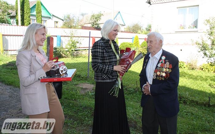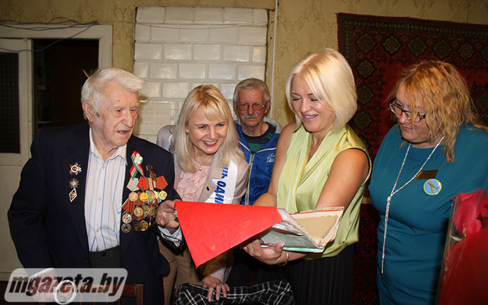 Председатель Минской областной организации Белорусского профессионального союза работников образования и науки Татьяна Апранич вручила Ивану Георгиевичу Благодарность, пожелала нашему земляку здоровья, мирного неба над головой, поинтересовалась его жизнью. Состоялся заинтересованный диалог, в ходе которого ветеран рассказал основные этапы своего жизненного пути.