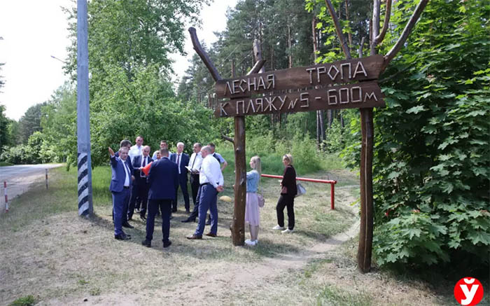 В прошлом году Минская областная Госавтоинспекция и «Минское лесопарковое хозяйство» создали эту лесную тропу протяженностью 600 метров. В самом ее начале установлена декоративная вывеска: удобный ориентир для посетителей пляжа!