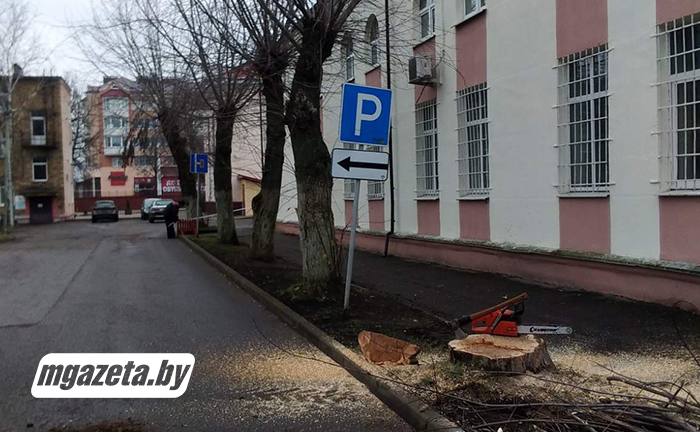 Деревья, которые росли возле типографии «Победа» на улице Тавлая, снесены. Работы проводили специалисты УП «Коммунальник».