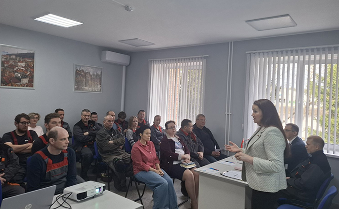 В рамках единого дня информирования председатель Минского областного объединения профсоюзов Татьяна Гурьева посетила ООО «Минеральная черепица». Ключевая тема встречи с трудовым коллективом — «Чернобыль: от возрождения до устойчивого развития». Спикер подробно остановилась на итогах шести уже реализованных госпрограмм.