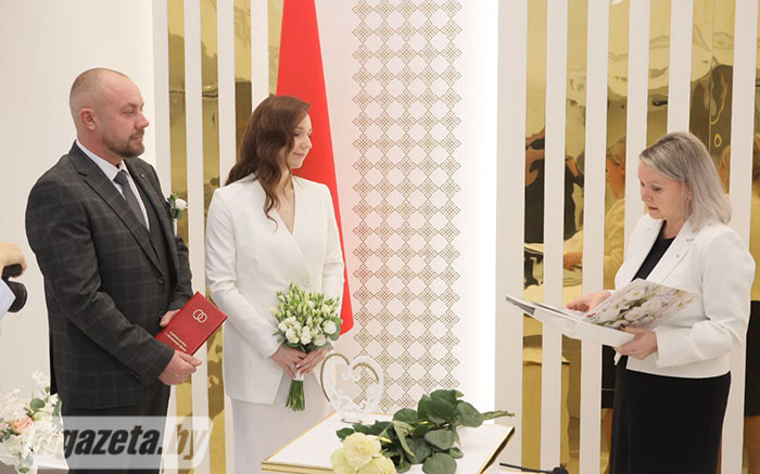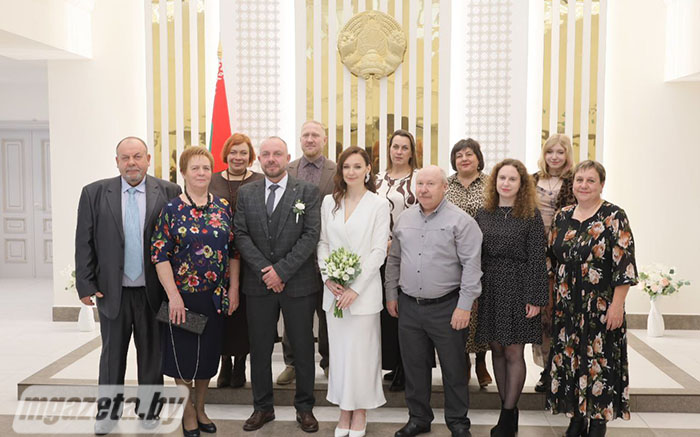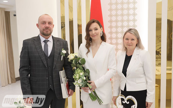 Мероприятие организовано по совместной инициативе Молодечненской районной организации РОО «Белая Русь» и отдела ЗАГС Молодечненского райисполкома. Поздравила молодых и вручила им подарки председатель районной организации общественного объединения Ирина Поцелуева.