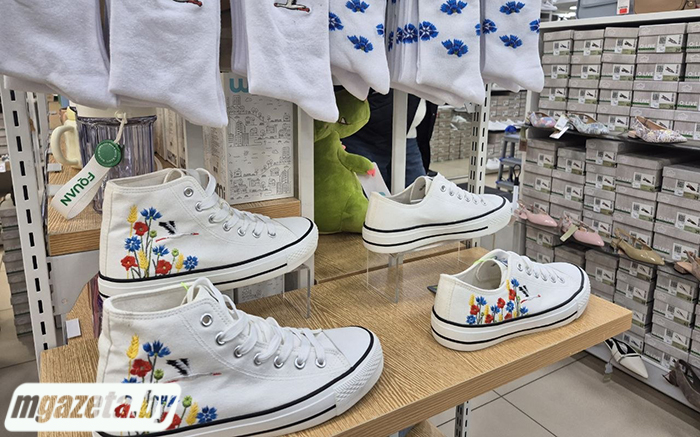 Посетив магазин в Молодечно, корреспондент «МГ» убедилась в наличии модного эксклюзива на наших прилавках, кстати, по весьма демократичным ценам. Так, кеды стоят чуть больше 40 рублей, полукеды на три с половиной рубля дешевле. Женские кроксы с комплектом джибитсов обойдутся без малого в 29 рублей, мужские – почти в 27. За шопер придется заплатить почти 50 рублей, а носки с белорусскими мотивами можно приобрести за 3 рубля 90 копеек.