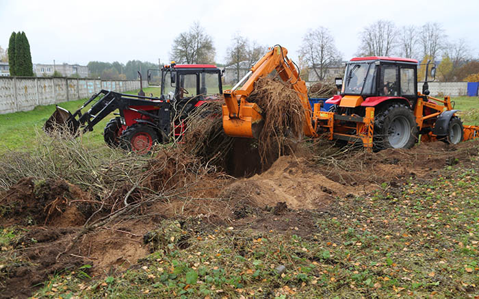 Была произведена очистка территории от накопившегося за лето мусора. Особое внимание было уделено удалению лишней растительности, которая портила внешний вид и создавала неудобства людям. Здесь на помощь работникам пришла тяжелая техника.