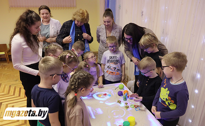 Большой интерактивный стол для рисования песком учреждению образования передала Молодечненская районная организация ОО «Белорусский фонд мира». Как отметила председатель организации Светлана Чижикова, новое современное оборудование поможет развить детские способности. Это будет способствовать социальной реабилитации маленьких жителей нашего города.
