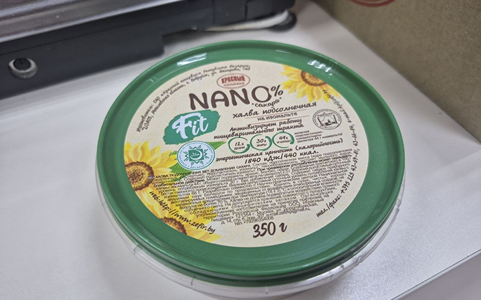 В магазине были в наличии ванильный и черничный зефир без сахара, а также халва подсолнечная на изомальте. На упаковке последней черным по белому написано, что активизирует работу пищеварительного тракта, а также о том, что верхний допустимый суточный уровень потребления такой халвы всего 68 граммов. Надпись «Внимание! Ограничение суточного потребления» есть и на лицевой части упаковки зефира.