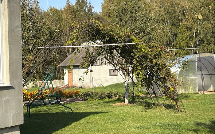 Действительно, придомовая территория поражает своей красотой: аккуратно посаженные в рядок клумбы, ровный газон, небольшой декоративный колодец и уютная беседка – всё это невероятный оазис красоты. Сама хозяйка хоть и проводит большую часть времени на работе, но и за двором успевает следить. Тут с гордостью можно сказать: награда в заслуженных руках.
