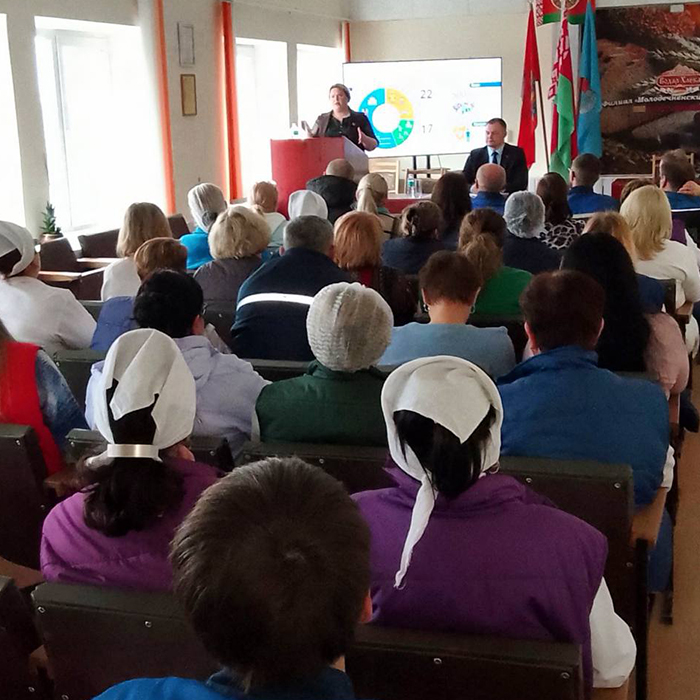 Председатель ППО Молодечненской ЦРБ Андрей Средов выступил перед сотрудниками кожно-венерологического диспансера, председатель Хожовского сельисполкома Александр Матецкий — перед коллективом гимназии-колледжа искусств г.Молодечно, а целевой аудиторией директора государственного учреждения образования «Социально-педагогический центр Молодечненского района» Валентины Хома стал коллектив филиал «Молодечненский хлебозавод»..jpg)