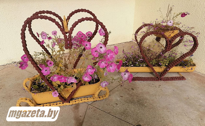 В агрогородке Хожово возле сельского Дома культуры, места, которое традиционно ассоциируется с досугом и общением, появились необычные арт-объекты – подставки для цветов, созданные из строгого ржавого металла.