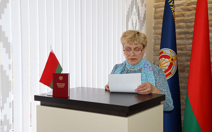 До начала официальной части присутствующие посмотрели фильм о геноциде белорусского народа. Далее каждый житель района торжественно зачитал текст присяги и получил Конституцию Республики Беларусь.