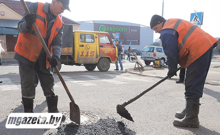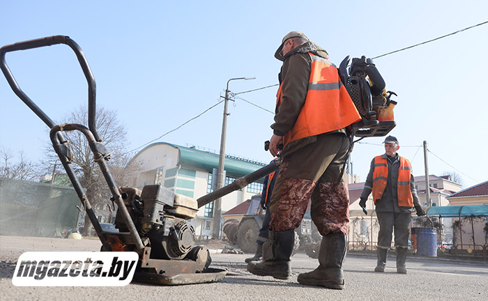 Сегодня на улице Громадовской работники УП «Коммунальник» проводят ямочный ремонт.