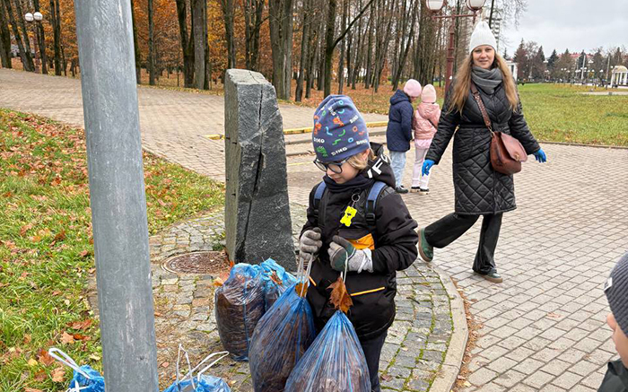 Уборка городского парка стала квестом для детей и родителей, которые соревновались в количестве убранного мусора.