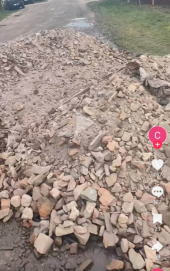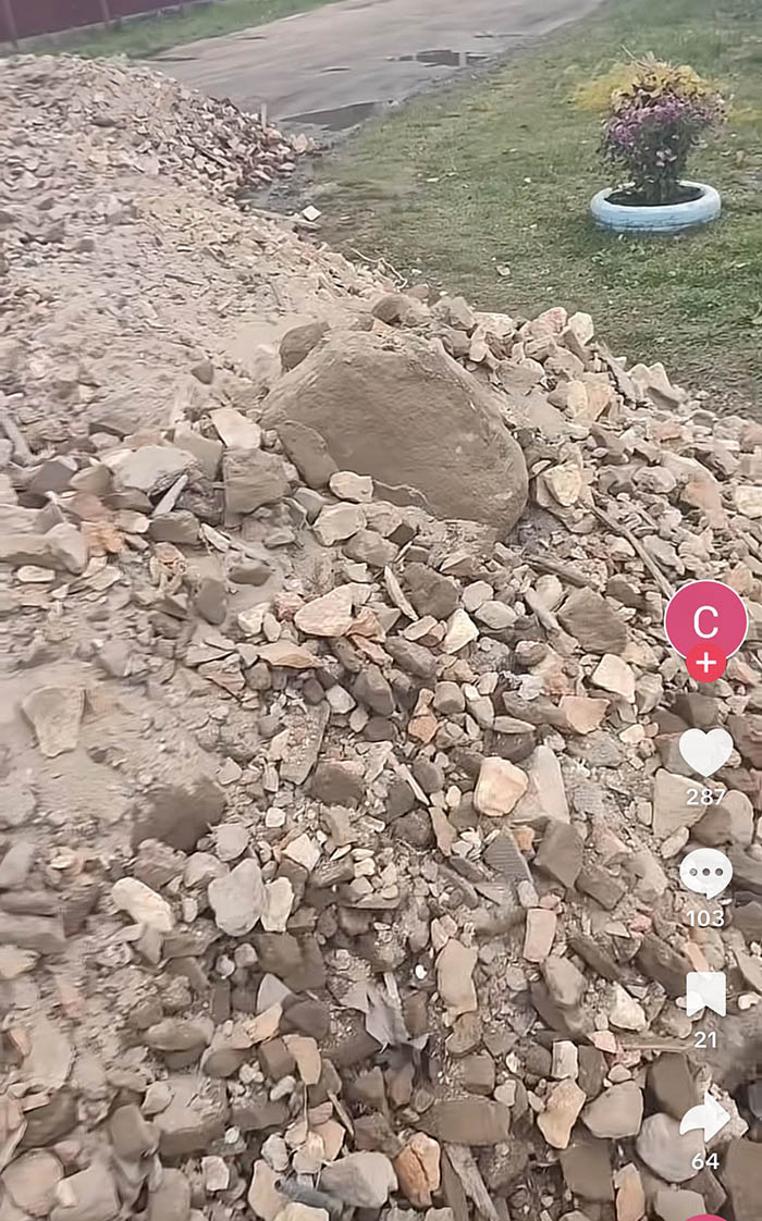 Он, как правило, представляет собой переработанные строительные материалы, в которых могут содержаться различные примеси, включая камни и металлические элементы. Именно это и запечатлел автор видеоролика.