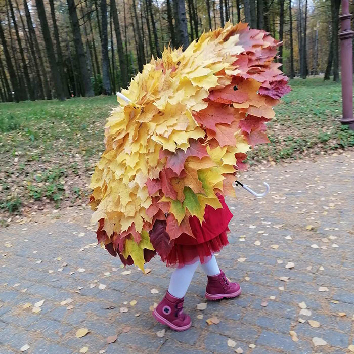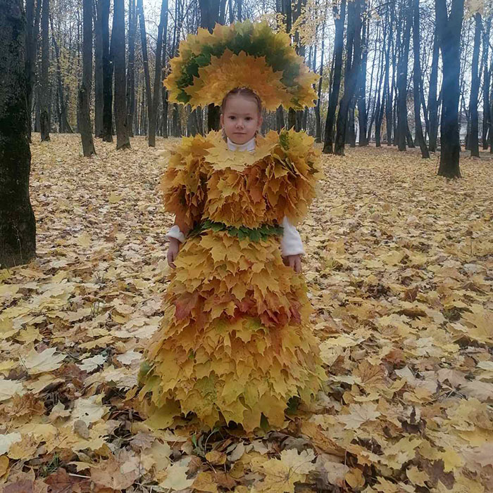 Мини-Осень гуляла по парку в платье, сотканном из разноцветных, ярких осенних листьев. Журналистский поиск привел меня в детский сад № 15, воспитанницей которого является София. Но главным сюрпризом стало то, что создателем этого удивительного наряда и автором фотосессии является ее мама Наталья.