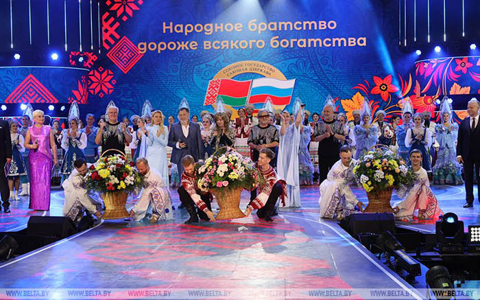 Гала-концерт в рамках Дней Союзного государства на "Славянском базаре" - уже давняя традиция. В этом году Беларусь и Россия отмечают 25-летие с момента подписания Договора о создании СГ. Лозунгом сегодняшнего концерта стал "Народное братство дороже всякого богатства".