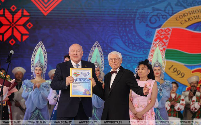 Сегодня здесь пригласили в творческое путешествие в разные уголки Союзного государства. Как отметил госсекретарь СГ Дмитрий Мезенцев, форум обогащает и укрепляет культурные связи. Он же вручил дипломы и памятные призы Постоянного Комитета Союзного государства их обладателям. На гала-концерте присутствовал премьер-министр Беларуси Роман Головченко.